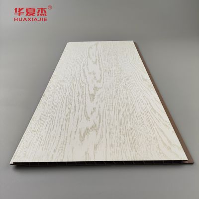 Introducción al producto: Panes de pared y techo de PVC blancos laminados más vendidos con grano de madera simulado - ideales para la decoración del apartamento